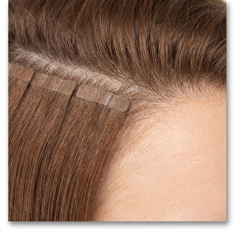 Våra tejp-extensions är gjorda av 100 procent äkta hår i remy-kvalitet. Hårförlängning med tejp-metoden är enkelt att fästa och fästena ser mycket naturliga ut.