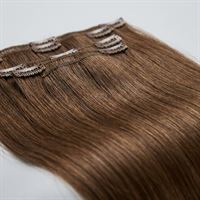 Dessa Clip On Extensions i 40 cm längd och färg #6 Brun är tillverkade av 100% äkta Remy-hår, vilket ger dig ett naturligt och fylligt resultat på bara några sekunder.