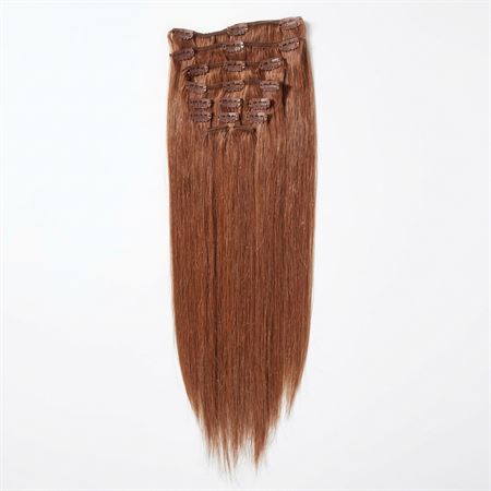 Dessa Clip On Extensions i färgen #33 Röd och en längd på 40 cm är tillverkade av 100% äkta Remy-hår av hög kvalitet. De ger dig omedelbart längre och fylligare hår med ett naturligt resultat.