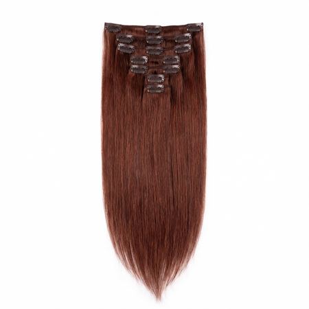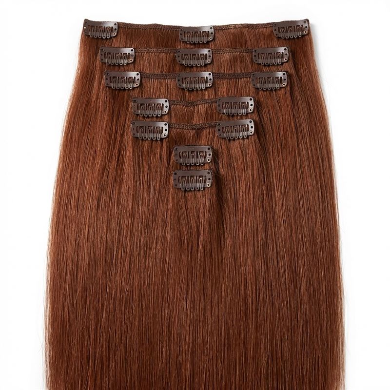 Dessa Clip On Extensions i färgen #30 Rödbrun är tillverkade av 100% äkta Remy-hår och ger dig långt och fylligt hår på bara några sekunder.