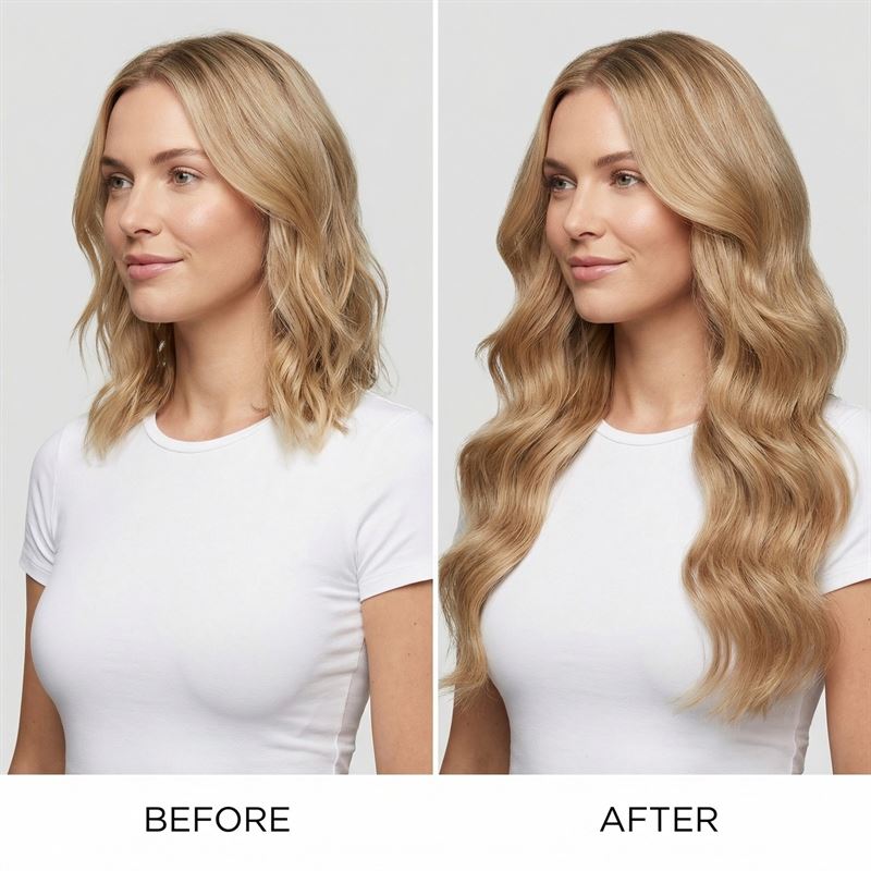 Dessa Clip-on extensions är tillverkade av 100% äkta Remy-hår och kommer i en vacker Mellanblond #27 nyans. Med en längd på 65 cm ger de ditt hår omedelbar fyllighet och extra längd för en naturlig och sömlös look.