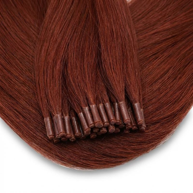Cold Fusion Extensions i 50 cm längd och nyansen röd 33# är en skonsam metod för att förlänga ditt hår och skapa ett naturligt fylligt resultat.