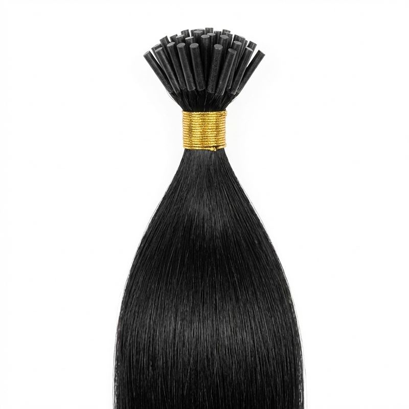 Dessa Cold Fusion I-tip hair extensions i 60 cm längd och Svart 1# är tillverkade av 100% äkta Remy-hår, vilket ger en naturlig och sömlös förlängning av ditt eget hår.