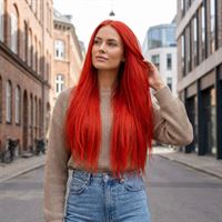 Hårförlängning i konstfiber, 7 delar, 60 cm, eldröd