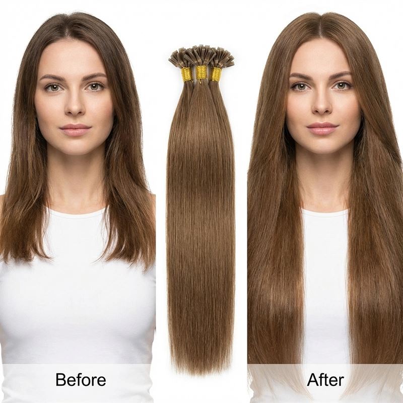 • Fästmetod: Hot Fusion (U-tip med keratinvax)