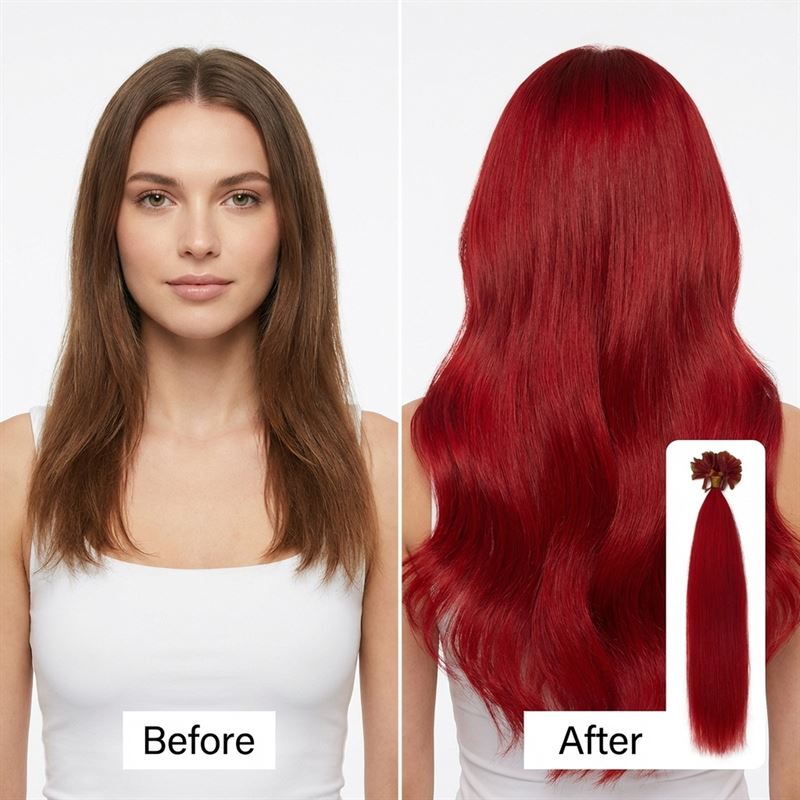 Hot Fusion Extensions 50 cm i en livfull röd nyans ger dig möjlighet att snabbt och enkelt förlänga och förtjocka ditt hår för en fyllig look.