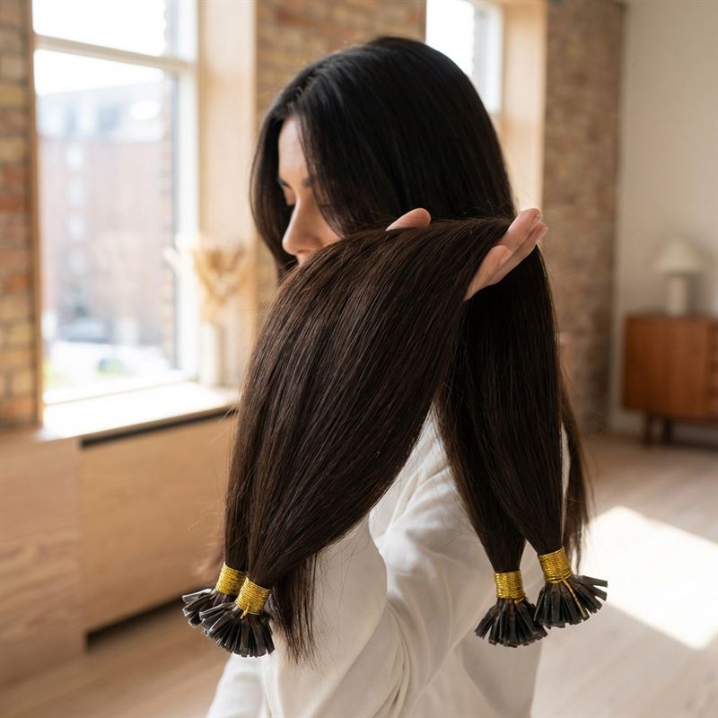Dessa Hot Fusion Hair extensions i 50 cm längd och färgen Mörkbrun 2# ger dig möjlighet att få långt och fylligt hår som håller i 2-6 månader.