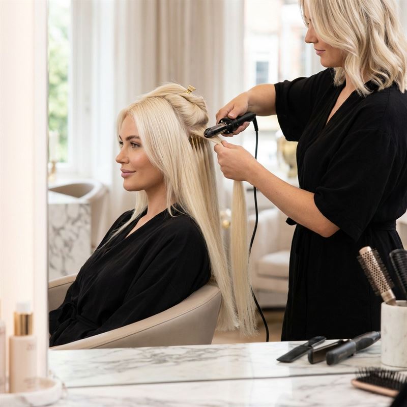 För bästa resultat och säker påsättning rekommenderas att Hot Fusion Extensions fästs av en professionell hårstylist.