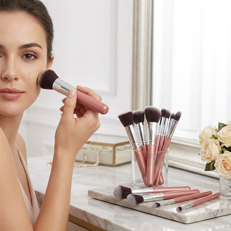 Omdömen för PRO Makeupborstar 10-pack, Rosa / silver