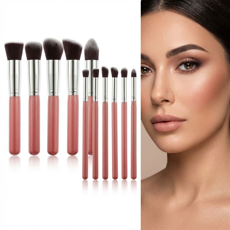 PRO Makeupborstar 10-pack, Rosa / silver