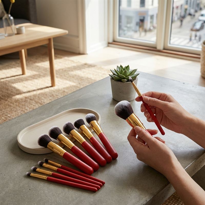 • Platt, vinklad kabuki-borste - för att blanda foundation på alla delar av ansiktet, särskilt bra på kindbenen och näsans konturer.