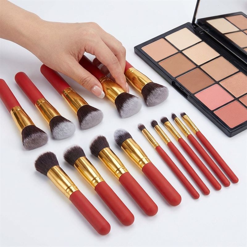 Underbar Makeup . Paketet innehåller 5 precisionsborstar och 5 kabuki-borstar (totalt 10 makeup børster ). Dessa klassiska borstar består av tätt packat syntetiskt hår av hög kvalitet. Axeln har ett matt svart grepp och en fin guldfinish.