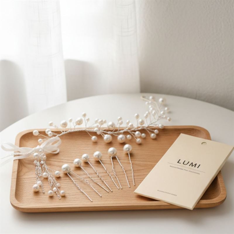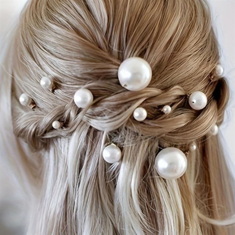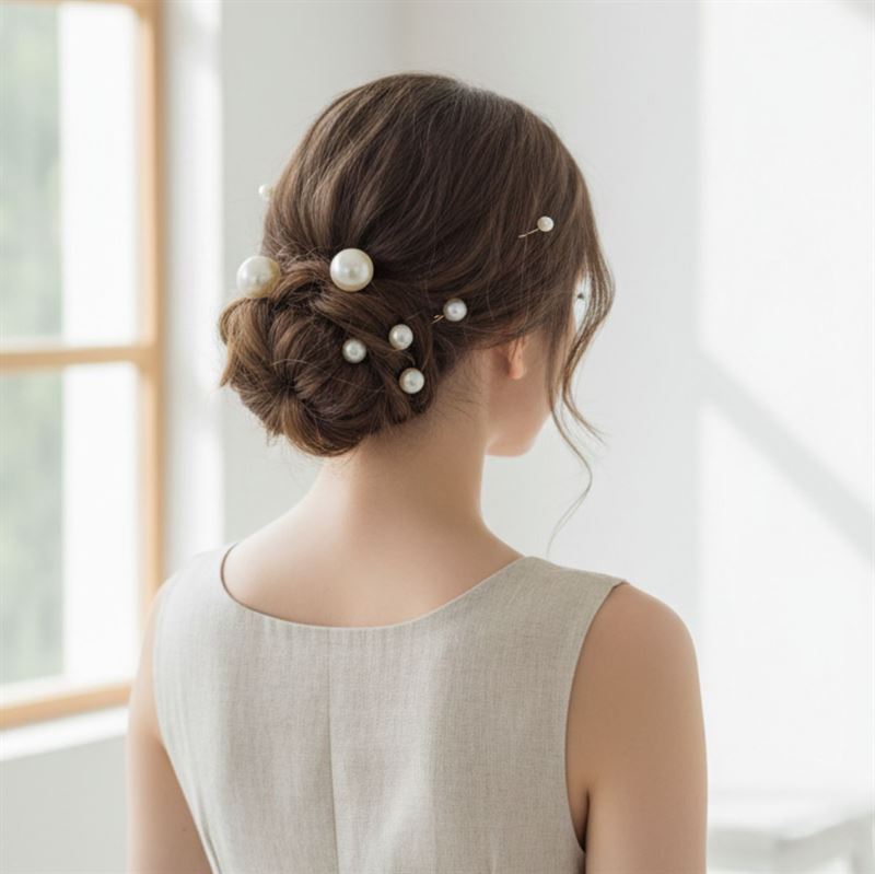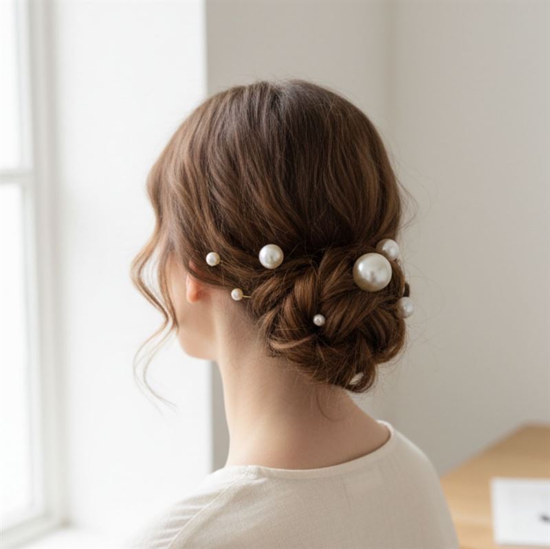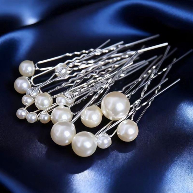 • Elegant håraccessoar med silverfärgade nålar och pärlor