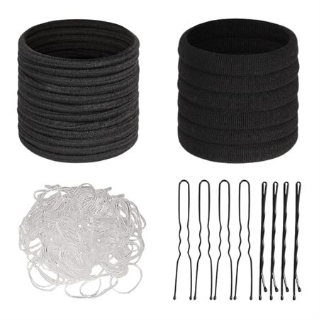 De svarta elastikerna är skonsamma mot håret och ger ett säkert grepp utan att slita, knäcka eller lämna märken. De genomskinliga mini-elastikerna är idealiska för flätor, små slingor och precisa uppsättningar där elastiken ska vara osynlig. Hårnålarna har rundade ändar och en slät yta, så att de inte repar hårbotten och samtidigt håller håret säkert på plats.