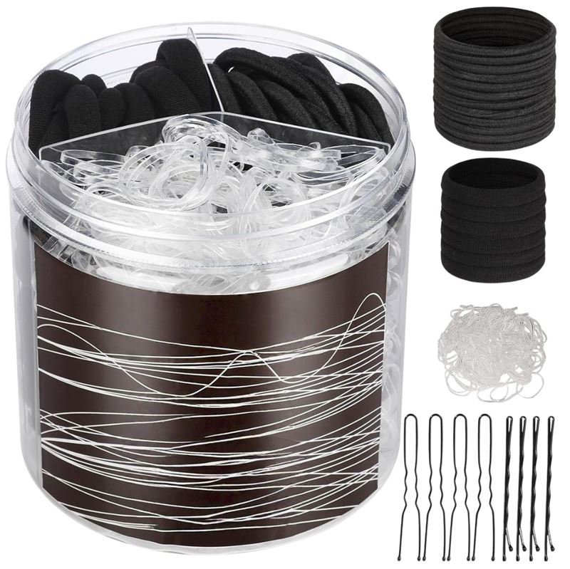 Setet innehåller både mjuka hårelastiker, starka seamless-elastiker, genomskinliga mini-elastiker samt klassiska hårnålar och U-formade hårnålar – perfekt för allt från strama hästsvansar och eleganta knutar till flätor, half-up-frisyrer och detaljerad styling.