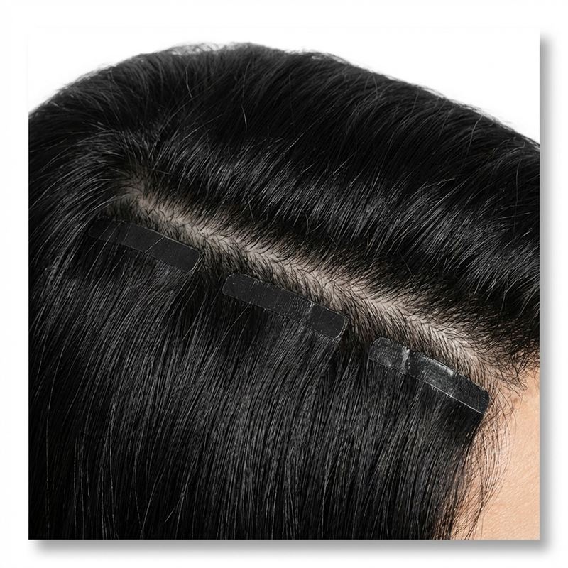 Varje förpackning innehåller 20 banor med en bredd på 3 cm, vilket säkerställer en osynlig övergång mellan ditt eget hår och förlängningarna. Den skonsamma tejpen fästs enkelt och gör att håret kan återanvändas genom att byta tejp. Eftersom det är äkta hår kan du styla det som du vill – platta, locka eller permanenta.
