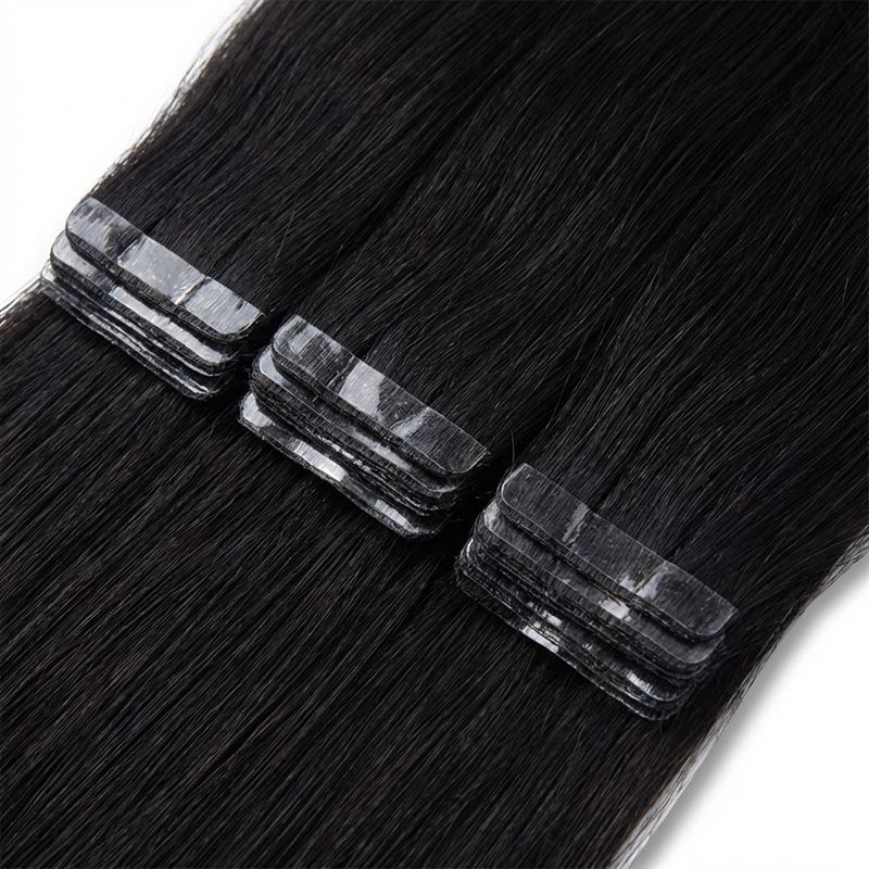Dessa Tape Extensions i 50 cm längd och naturlig svart 1B# färg är tillverkade av 100% äkta Remy-hår av hög kvalitet. De ger dig möjlighet att enkelt skapa en fylligare och längre frisyr med ett naturligt resultat.