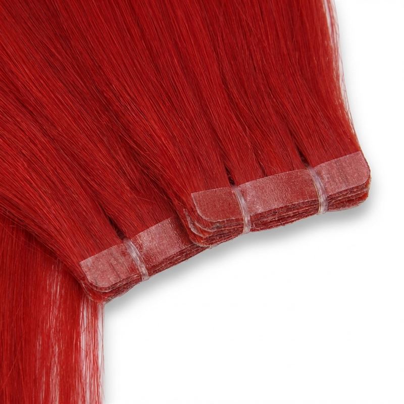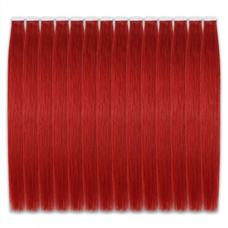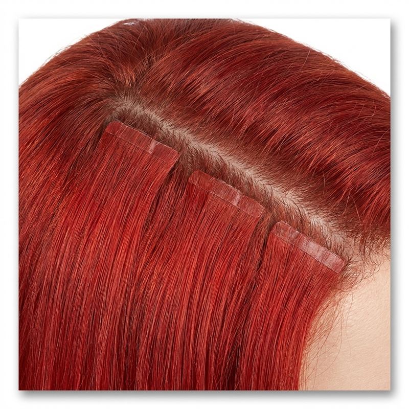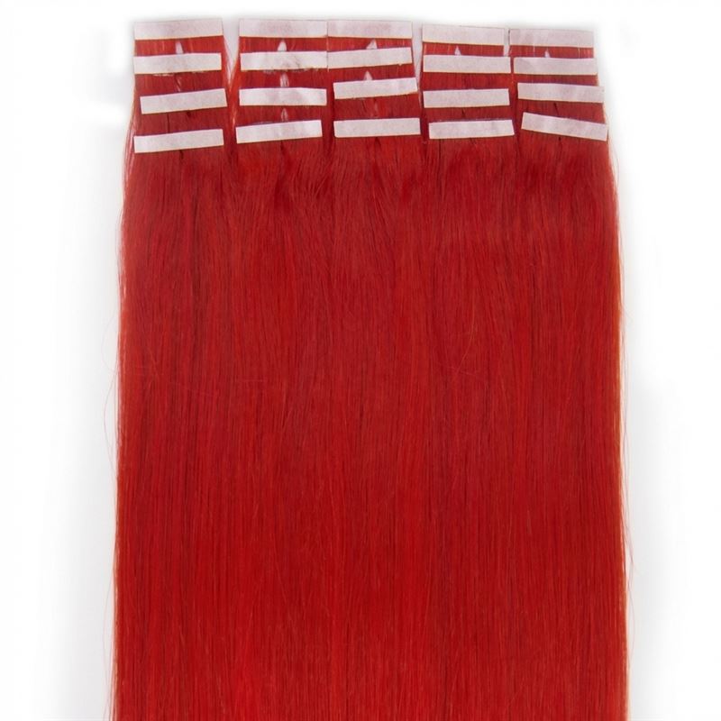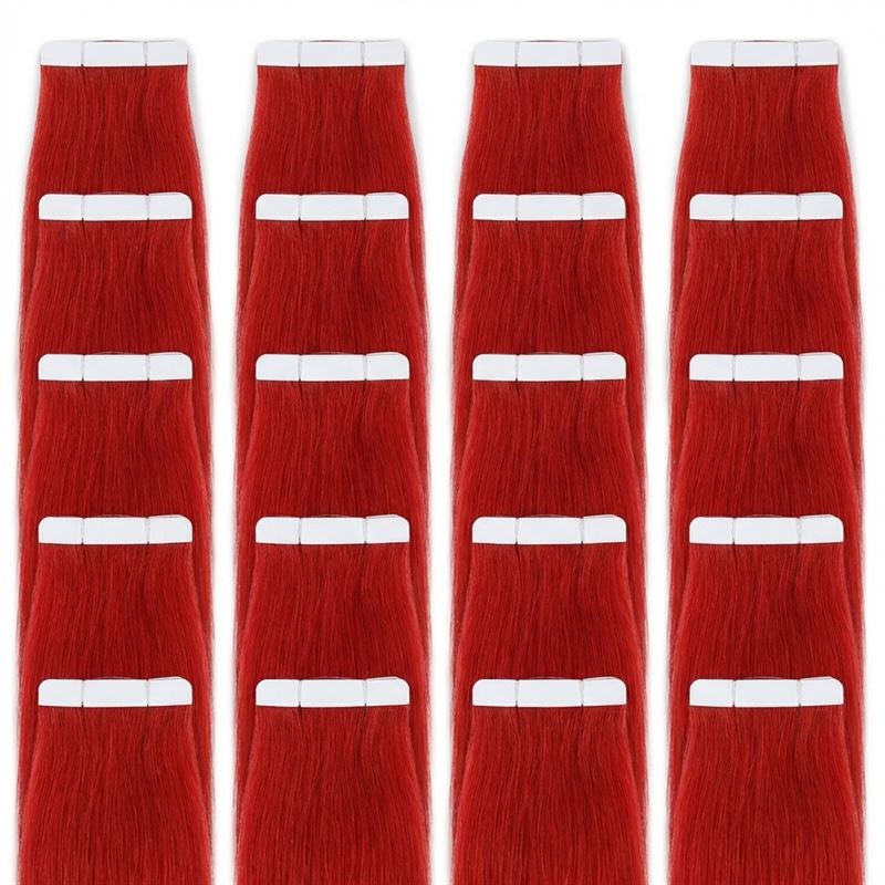 Dessa Tape Extensions i 50 cm längd och röd nyans är tillverkade av 100% äkta Remy-hår, vilket säkerställer en naturlig look och känsla som smälter samman med ditt eget hår.