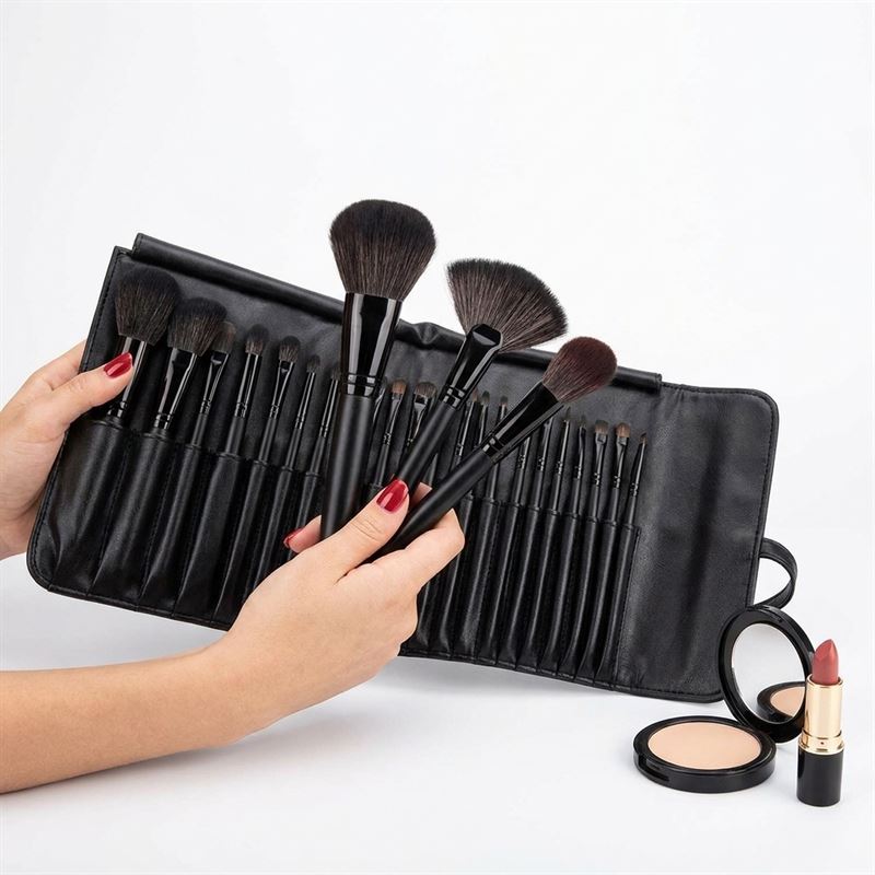 • Borsttyper: Fläktborstar, rougeborstar, bronzerborstar, highlighterborstar, konturborste, foundationborste, ögonbrynsborste och kam, mascara-/ögonbrynsborste, fina borstar för linjer/eyeliner/läppar, applikatorer för ögonskugga, ögonskuggsborstar, concealerborste.