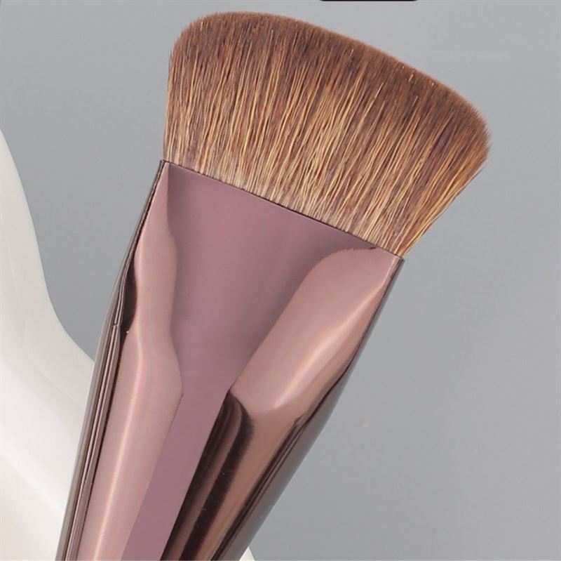 De silkesmjuka syntetiska borsten gör det enkelt att arbeta in produkten i huden med precision och kontroll, så att du får ett professionellt resultat – oavsett om du vill ha lätt eller full täckning. Den snedställda formen gör borsten särskilt effektiv runt näsan, käklinjen och kindbenen, där precision är som viktigast.