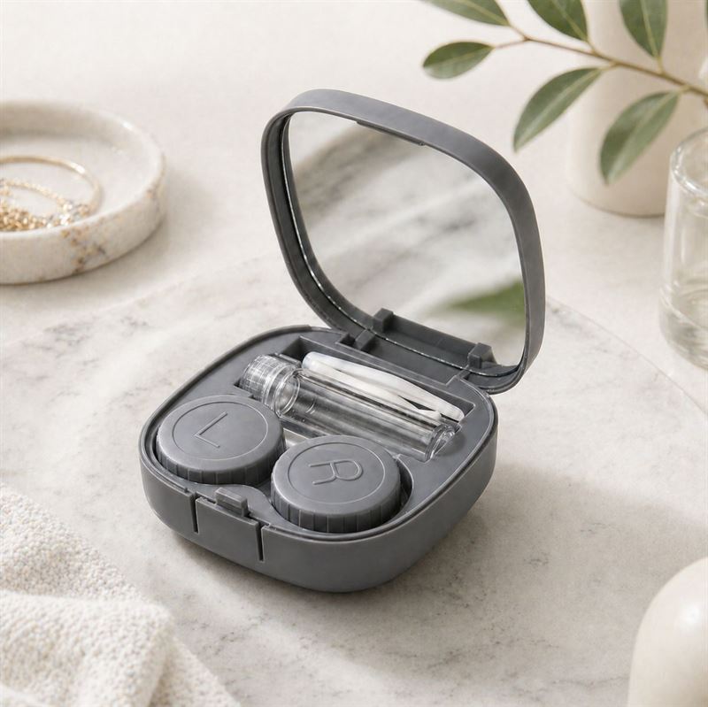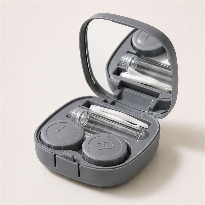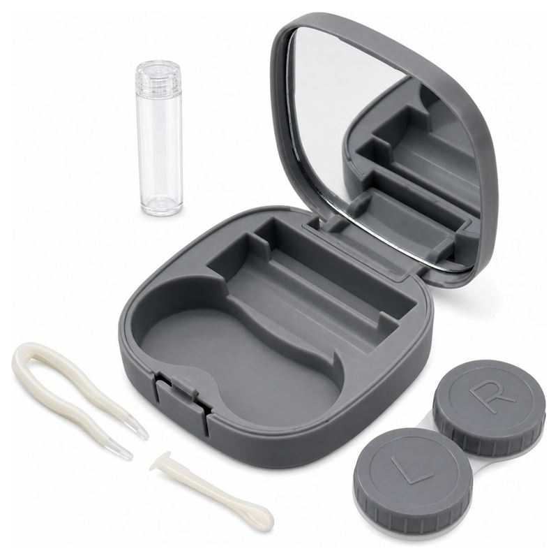 UNIQ 5-i-1 Kontaktlinsetui med Spegel - Mörkgrå