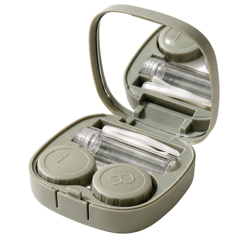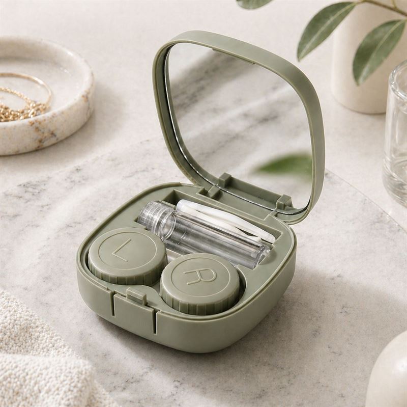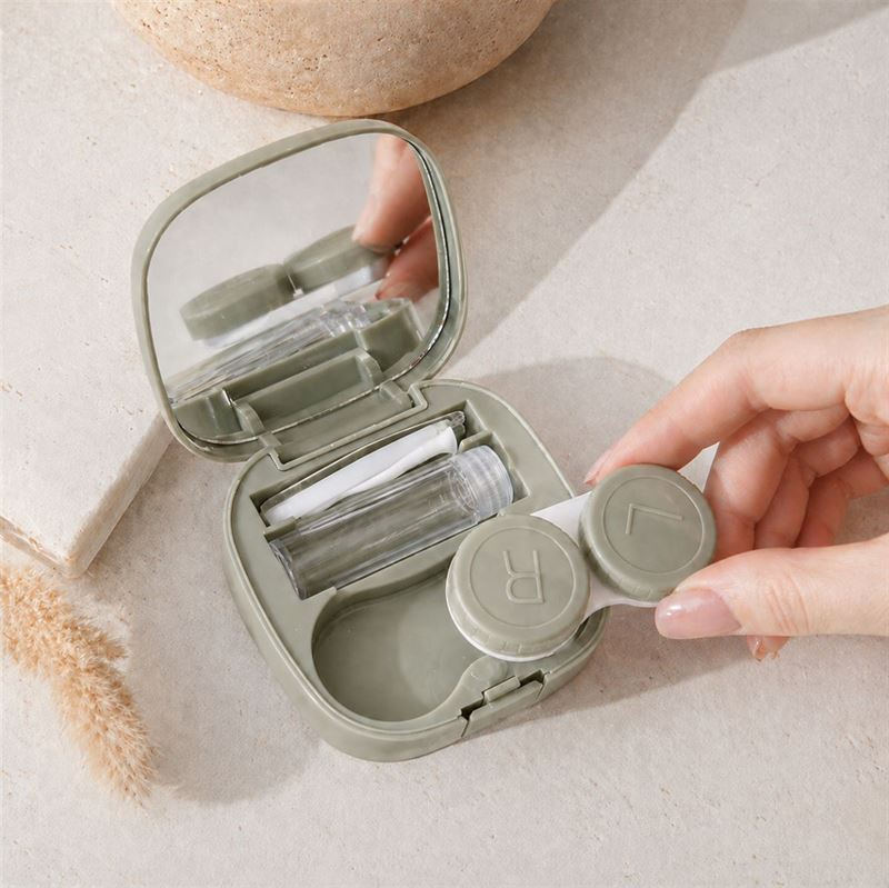 Detta fodral för kontaktlinser samlar flera funktioner i en kompakt design och fungerar perfekt både som kontaktlinsfodral och resekit för ögonvård. Den smarta 5-i-1-lösningen innehåller en inbyggd spegel, kontaktlinsbehållare med markering för vänster och höger, behållare för linsvätska, pincett för kontaktlinser samt kontaktlinsapplikator, så att du enkelt och mer hygieniskt kan sätta i och hantera dina linser när du är på språng.