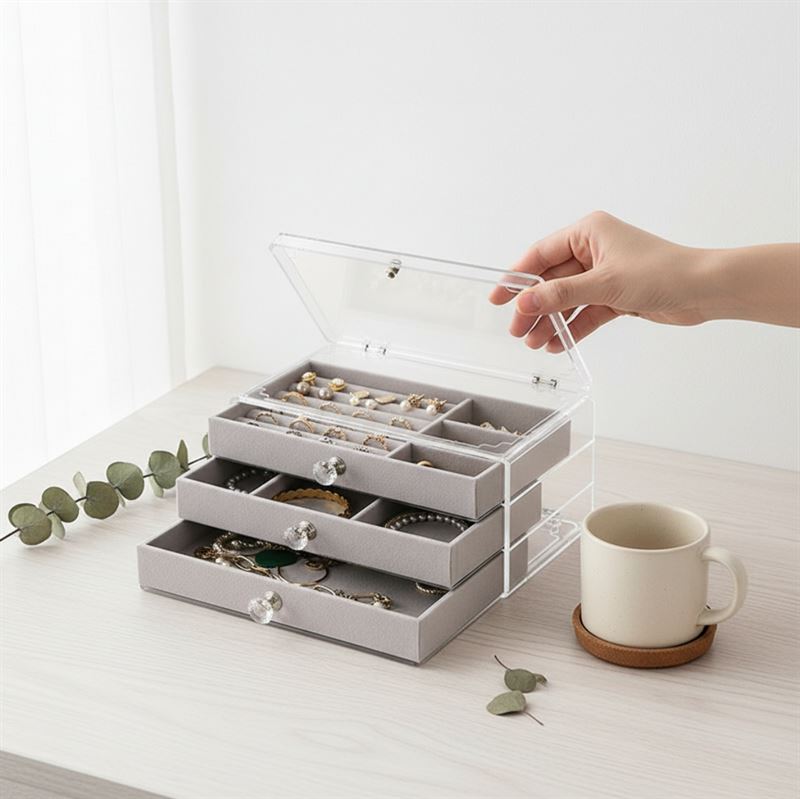 UNIQ Akryl Organizer för Smycken med 3 lådor - J305