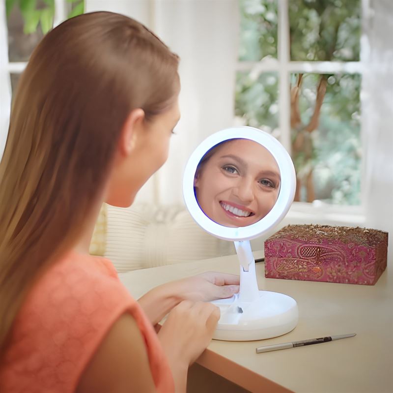 2. Tänd LED-ljuset när du vill ha bättre sikt vid sminkning.