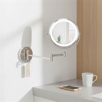 Perfekt ljus och precision i vardagen. UNIQ LED väggmonterad sminkspegel är en elegant och platsbesparande lösning för badrummet. Spegeln har inbyggt LED-ljus, ledad arm och två spegelsidor med 1x och 5x förstoring, perfekt för makeup, hudkontroll och rakning.