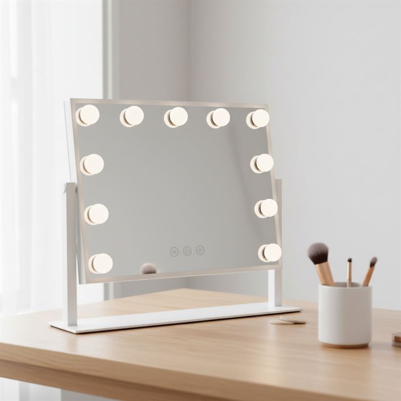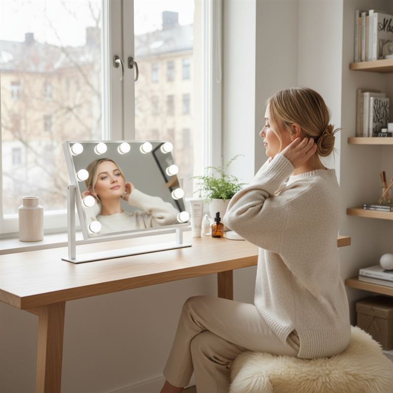 • Justerbar vinkel: Spegeln kan vippas så att du själv kan bestämma den perfekta vinkeln för din make-up.