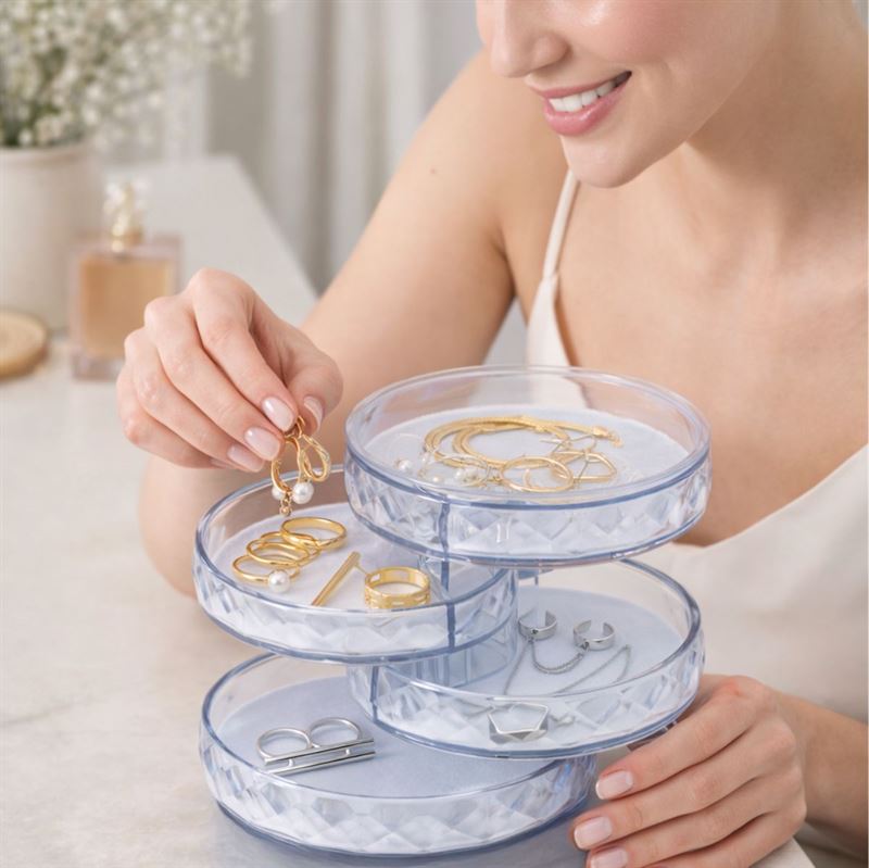 Omdömen för UNIQ Roterbart Smyckeskrin med 5 Lager – Organisera Smycken Elegant