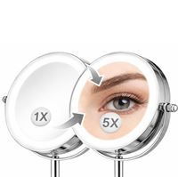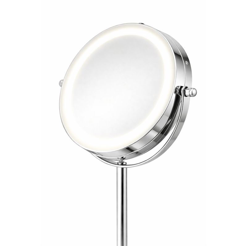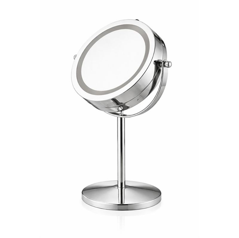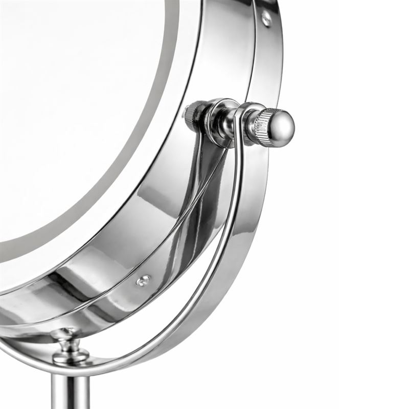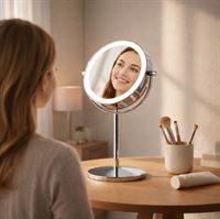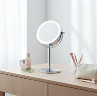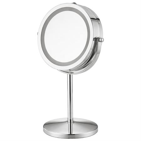 Denna deluxe-modell har ett vinklingsbart spegelglas med mjukt och jämnt LED-ljus, samt en sida med 5x förstoring som gör det enkelt att applicera makeup med hög noggrannhet. Den andra sidan har 1x förstoring för en helhetsbild.