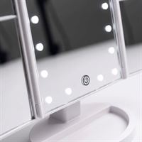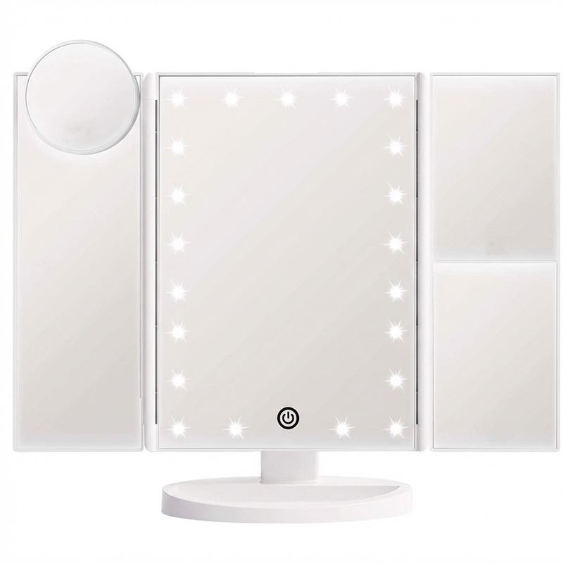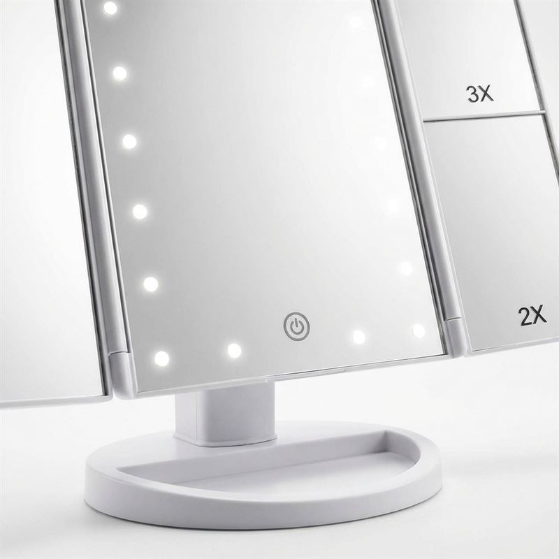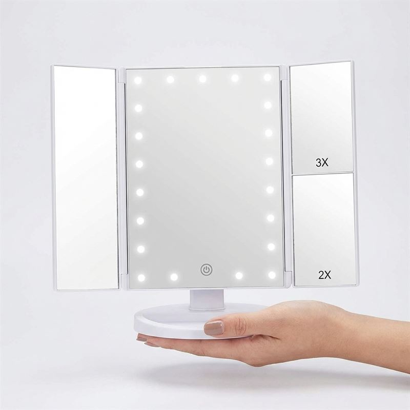 Denna UNIQ trifold makeupspegel i vit färg är utrustad med 21 LED-lampor och ger dig optimal beljusning för din dagliga sminkrutin.