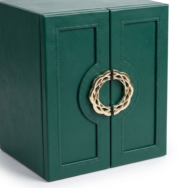 Låt dina värdefulla smycken vila tryggt och stilfullt i detta exklusiva UNIQ XL smyckeskrin. Den djupa, gröna nyansen andas sofistikerad elegans, och den rymliga designen organiserar dina favoriter på ett ögonblick. Ett smyckeskrin som inte bara skyddar dina skatter, utan även förhöjer skönheten i ditt rum.